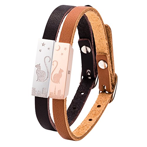-. Title : 猫 ねこ ネコ ステンレス 三日月 ムーン キャット レザー ペアブレスレット 革 シェアハート ゴールド×キャメル&シルバー×ブラウン 4SBR017GOCA&4SBR017SVDB