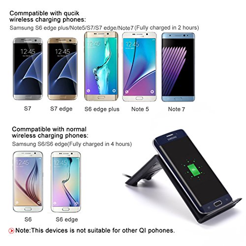 Please note 1:It is only suitable for S7/S7 edge/S6 edge +/Note5 in portrait mode with fast wireless charging(9V/1.2A),Normal wireless charging speed(5V/1A) for S6/S6 edge in portrait mode,Not suitable for all phones IN LANDSCAPE MODE,It is also not suitable for any other qi wireless charging phones.