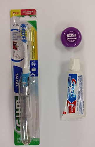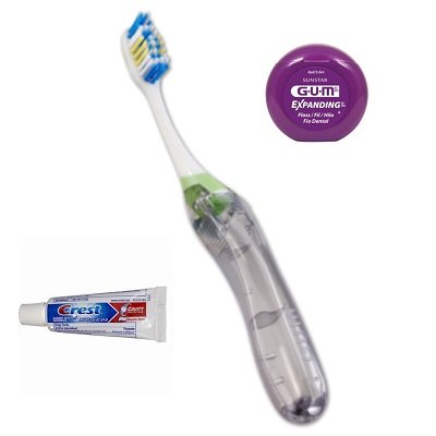 -. Feature : Travel Folding Soft Toothbrush, 1 Pack - Colors Vary - / Crest, Cavity Protection, Fluoride Anticavity Toothpaste, - 0.85 oz Travel Size - 1 pack / GUM Expanding Dental Floss, 4yd / 3.6 m Travel Tub