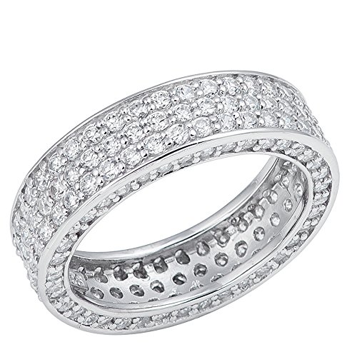 -. Title : 6mm Sterling Silver Fancy CZ Side Stones Wedding Band Eternity Ring 5-10