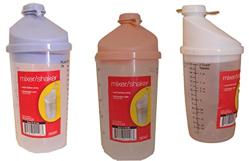 Set of 3 Black Duck Brand 2 Cup Mixer/Shaker with Pop Off Lid and Spout 1 Lavender, 1 Peach, 1 White