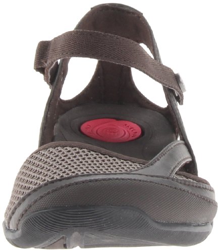 Sporty closed-toe sandal in collapsible design featuring Mary Jane strap with snap closure and cutouts at heel