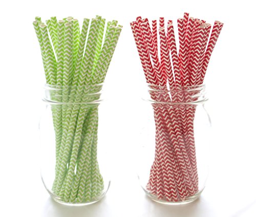 Christmas Party Straws, Green & Red Paper Straws (50 Pack) - December Holiday Party Supplies, Xmas Chevron Straws