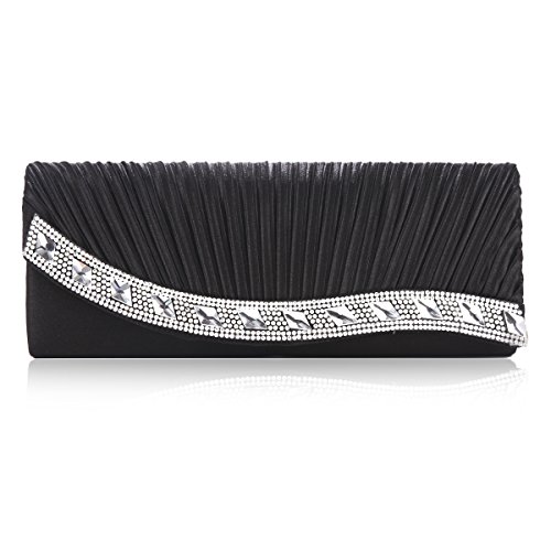 Product Description A luxurious women clutch is a Pefect partner for a Gorgeous night when matched with a refined dress.This satin crystal appliques sparkle handbag with a bling rhinestone studded wave trim, elegant design and crafted inner with terylene lining,a patch pocket is inside,it offers just enough room for your most important items such as cash or phone also bring with a detachable silver chain can be used as a cross body bag or a shoulder bag. Womderful gift for women. Approximate Dimensions:10"L X 4"H X 2"W (25.5cm*10cm*5cm), Chain Strap 41.2"(116cm). NOTE: Different people with different measurement,so it may exist 2-3 measurement errors.Hope you will not mind it.Due to monitor variations colors may appear slightly different. 0