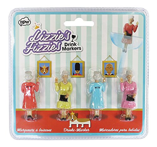 -. Binding : Kitchen -. Brand : NPW -. Color : Multicolor -. EAN : 3269286116356 -. Feature : Package of 4 Queen Elizabeth drink markers / Each Lizzie Fizzie is approximately 2.2-inches long / Pop one of these queen's onto the side of your champagne glasses for a royally good laugh / Use them at any social soiree, be it a garden party, a ball or just another royal wedding / Entertain friends with hilarious NPW gifts and gadgets that will crack them up -. IsAutographed : 0 -. Label : NPW -. Manufacturer : NPW -. Model : NP37951 -. MPN : NP37951 -. PackageQuantity : 1 -. PartNumber : NP37951 -. ProductGroup : Kitchen -. ProductTypeName : KITCHEN -. Publisher : NPW -. Size : One size -. Studio : NPW -. Title : NPW-USA Lizzies' Fizzies Cocktail/Wine Glass Markers, Queen Elizabeth