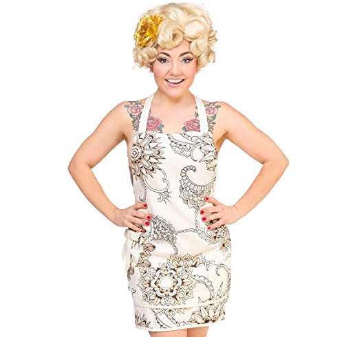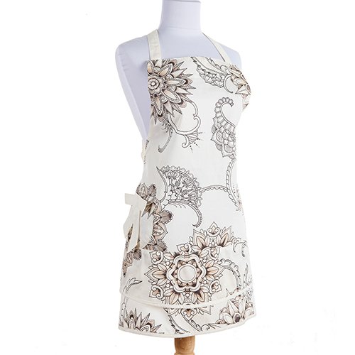 Henna Tattoo Apron with Pocket, Mehndi Mandala Bursts on Cotton Fabric