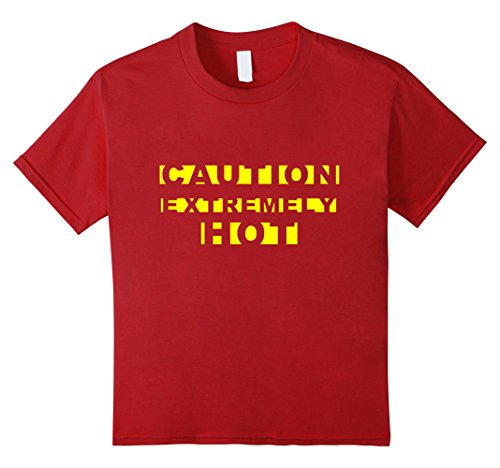 Kids CAUTION EXTREMELY HOT Funny Crime Scene Tape Yellow Text Tee 10 Cranberry