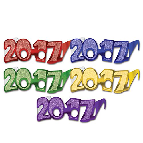 Beistle 50676-17 50 Piece 2017 Glittered Foil Eyeglasses, Multicolor
