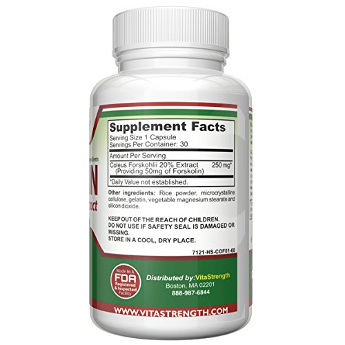 -. Binding : Health and Beauty -. Brand : VitaStrength -. EAN : 0654391797898 -. Feature : LOSE WEIGHT, FEEL GREAT: Doctors everywhere are recommending coleus forskohlii root extract to patients to help them lose weight! This natural herb supports a healthy metabolism to assist with weight loss and help you see results from your diet and exercise plan more quickly. / MAXIMUM STRENGTH: Bottle contains 60 coleus forskohlii capsules that are standardized to 20% forskolin, giving you up to 500 mg per day of the active forskolin belly buster compound to help you see results and offer the best weight loss products for women and men. / THE PURER, SAFER CHOICE: Our weight-loss supplements are manufactured in an FDA Inspected and Approved GMP-certified facility in the USA with natural ingredients, so you can be certain you're getting pure forskolin extract with no hidden drugs or stimulants. / ONE AND DONE: VitaStrength makes it easy to reap the benefits of forskolin extract for weight loss! Just one capsule once or twice per day is all it takes! / SATISFACTION GUARANTEED: VitaStrength makes only the absolute best weight loss supplements, and we stand behind the quality of our products 100%. If you're dissatisfied with our forskolin for weight loss, let us know within 60 days for a full refund! -. IsAdultProduct : 0 -. Label : VitaStrength -. Manufacturer : VitaStrength -. MPN : vitaforsk -. PartNumber : vitaforsk -. ProductGroup : Health and Beauty -. ProductTypeName : HEALTH_PERSONAL_CARE -. Publisher : VitaStrength -. Studio : VitaStrength -. Title : Premium Forskolin For Weight Loss 500mg Daily- Pure Forskolin Extract For Weight Loss - Coleus Forskohlii Standardized 20%- Forskolin Belly Buster - Weight Loss Supplements & Products For Women & Men -. UPC : 654391797898