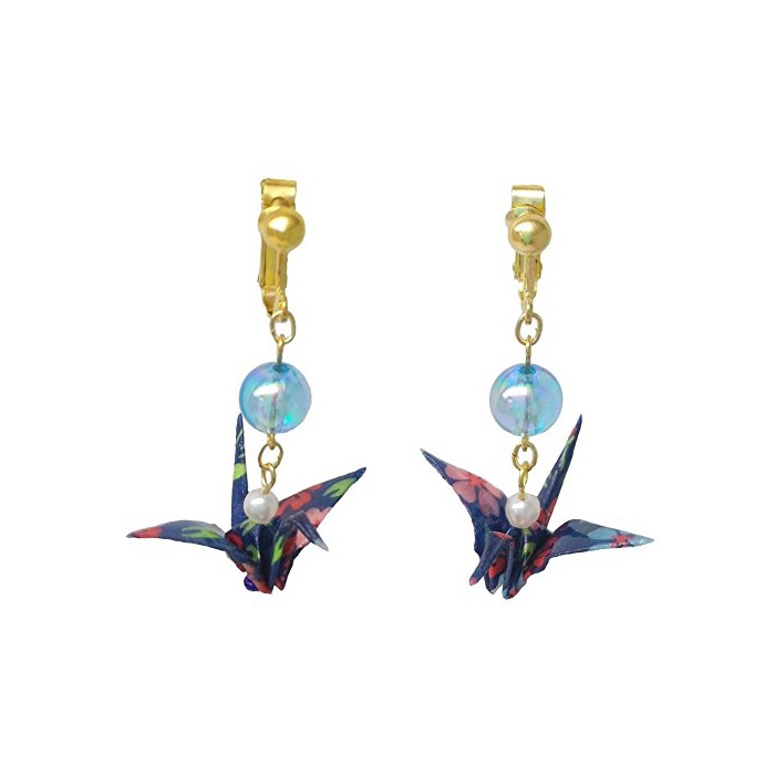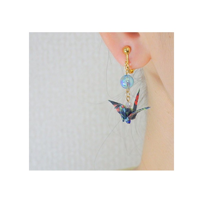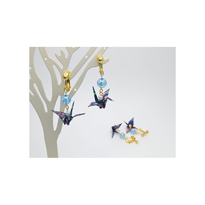 원본상품명: 人 折り鶴 和風 イヤリング 鶴 アクセサリ (色:ネイビブル)