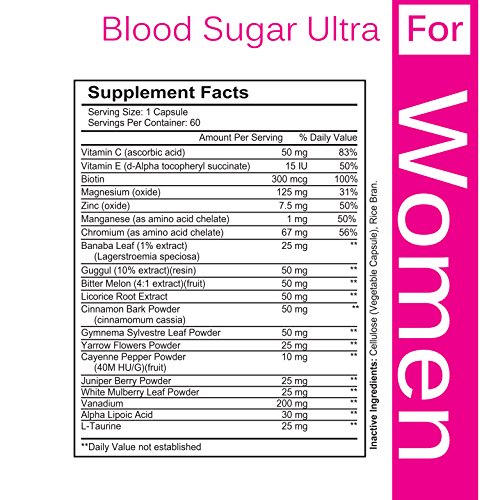 Blood Sugar Ultra For WOMEN, Naturally Supports Healthy Blood Glucose Levels, With Banaba Leaf, Bitter Melon, Gymnema Sylvestre, Guggul & Herbs For A...