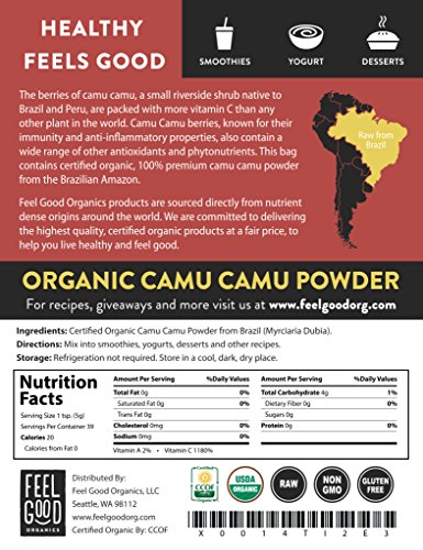 IMPORTED 100% RAW FROM BRAZIL - This bag contains certified organic, 100% premium camu camu powder from the Brazilian Amazon.