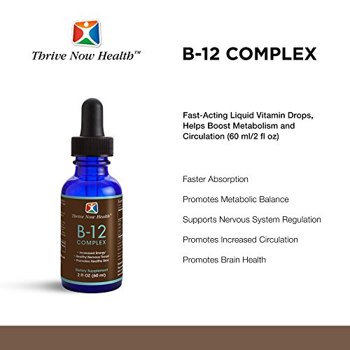 FASTER ABSORPTION: Thrive Now Health B-12 Complex in liquid drops is easy to consume, offers faster digestion than tablets and capsules, and provides flexibility in dosage.
