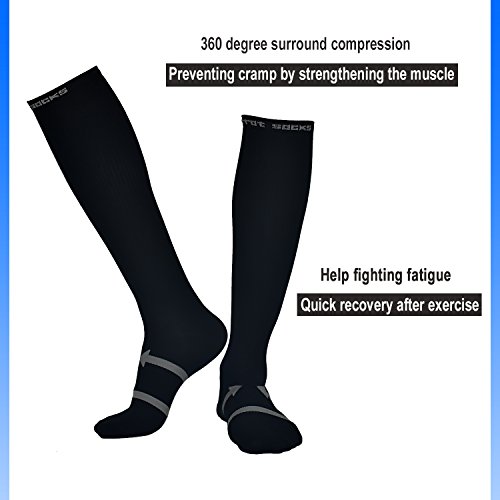 Prevent Injury and Alleviate Shin Splints - The supportive effect and compression of this sports socks reduce muscle vibration drastically, resulting in less soft tissue damage and less sore muscles. it allows you to perform at your peak, recover faster and feel better sooner.