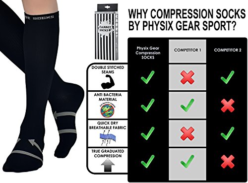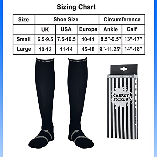 15-20mmhg True Graduated Compression - The compression socks are knee high and make use of graduated compression to enhance blood circulation and oxygen flow to increase athletic performance or for added comfort during everyday wear.