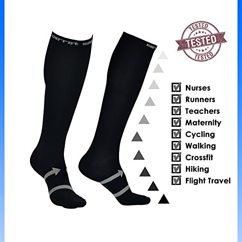 Ultra-breathable and Moisture Wicking - This compression socks wicks away moisture to regulate body temperature, while providing just the right amount of comfortable compression, for all day support , at home or while traveling.