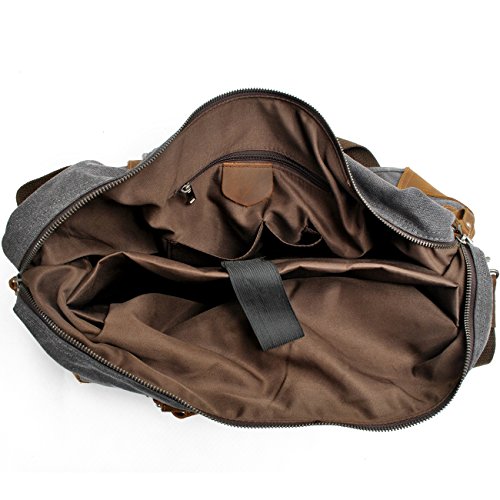 -. Feature : Materials:Washed canvas ,Cow leather Trim / Product Dimensions:17.7(L)*6.7(W)*12.6(H)inch / The bag comes with an adjustable shoulder strap so you can adjust it to meet your needs. One main big zip compartment with Two exterior zip pocket。 / The main compartment of the large canvas lage tote bag is roomy- enough for a change of clothes,15 inch laptop,ipad etc. / Used for overnight traveling, a weekend trip, or a gym sports bag.