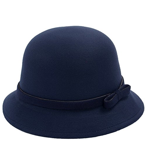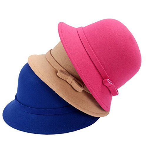 EUBUY Womens Vintage Wool Felt Fedora Hat with Bowknot Floppy Hat Cloche Derb Bowler Hat Wide Brim Hat
