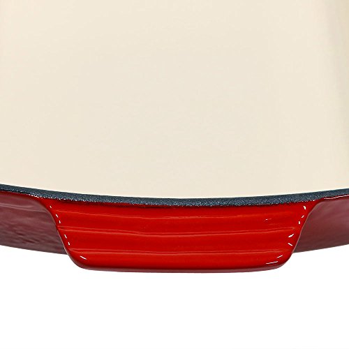 - Cast iron 11.5 inch baking dish ready to cook or bakeDinner time just got a little bit easier with this deep cast iron baking pan. Its large 2.85-quart capacity is perfect for cooking deep layered recipes, like lasagna, which is why some also refer to this as a lasagna or roasting pan. Due to its versatility, your options are endless when it comes to cooking. The durable cast iron retains heat and ensures that all foods bake evenly and has an oven-safe temperature up to 400-degree F. The easy-to-hold handles allow for easy and secure transportation when taking the dish straight from the oven to your dining room table. With the vibrant colored enamel, this dish also doubles as a beautiful serving dish so there is no worry about having to transfer food to another bowl once it comes out of the oven.