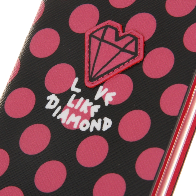 도트패턴과 전면의 하트다이아몬드 패치 트리밍으로 걸리쉬한 분위기의 핸드폰 케이스입니다.