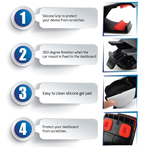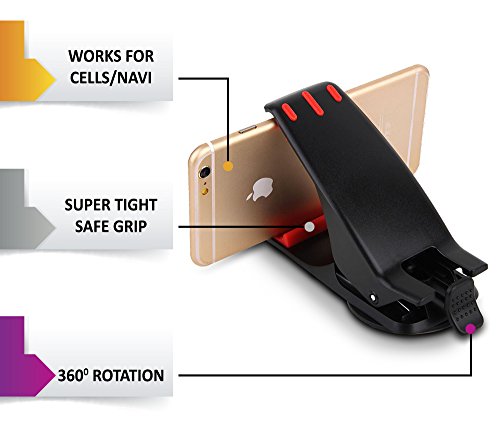 Abco Tech Cell Phone Holder for Car Dashboard - Sturdy Mobile Phone Car Mount with 360 Rotation by Abco Tech (Black/Red)
