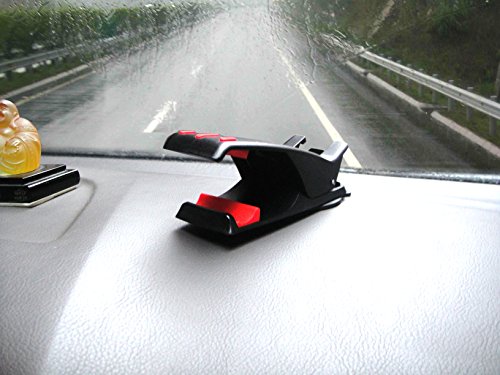 Our universal mount allows you to enjoy your music and use GPS programs without having to hold the devices in your hand. The holder attaches strongly to the car windshield or dashboard and gives you convenient access and view of your devices while allowing you to comfortably keep your eyes on the road. The device can also be used in other settings such as in the office or at home. It can be securely mounted on other flat, non-porous surfaces such as tables, desks, refrigerators, windows, etc. The holder is compatible with many handheld devices, including, but not limited to: Apple iPhone 6, 6 Plus, 5S, 5C, 5, 4S, 4, 3GS iPod Touch many Android phones Samsung Galaxy Note, Note II, Note III, Note IV Samsung Galaxy S4, Galaxy S3, Galaxy S2, Galaxy Nexus HTC One X, One S, Sensation G14, Thunderbolt Nokia N9, Lumia 920 and 900 Blackberry Z10 Sony Xperia Z Phone GoPro Hero, Hero2 SPECS: Weight: 4.5 oz. Clamp width: up to 4.8 Inches Material: ABS/PVC Color: black/red Product width: 2.25 Inches Product Height: 2 inches Product Length: 6.2 inches Gel pad Diameter: 2.5 Inches