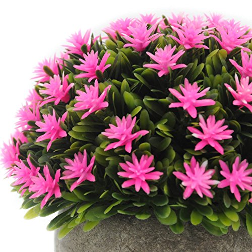 Velener Mini Plastic Artificial Pine Ball Topiary Plant with Pots for Home Decor (Pink Flower)