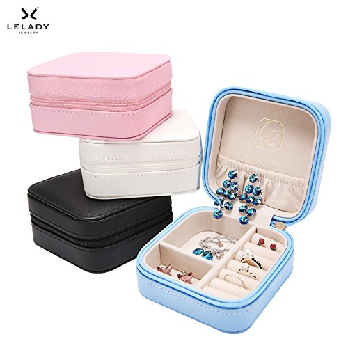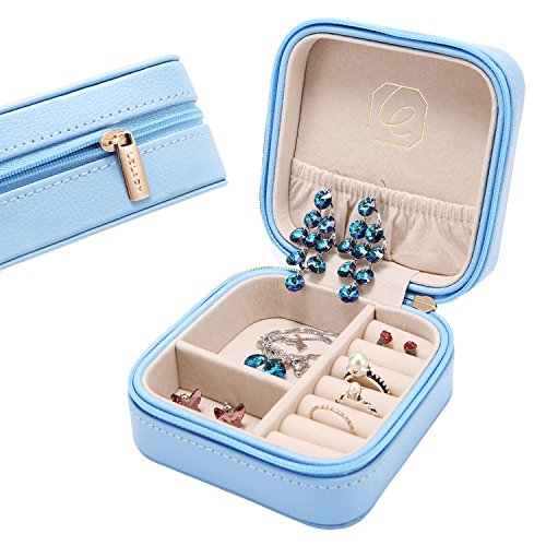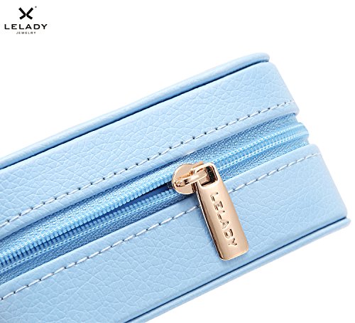 LELADY Small Jewelry Box Portable Travel Jewelry Case Organizer Faux Leather Storage Holder for Earrings Rings Necklaces, Gifts for Women Girls Mini Size (Sky Blue)