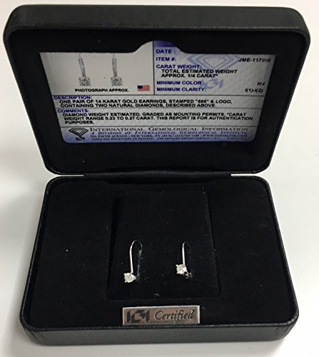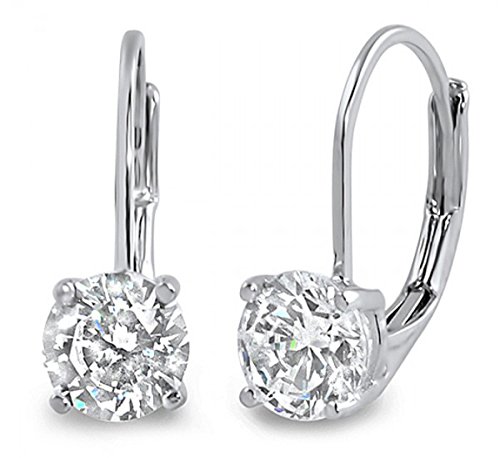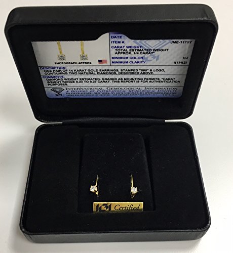 -. Title : JewelMore 0.30 CTW IGI USA Certified Round White Diamond Leverback Earrings in 14K White Gold (H-I/I1-I2)