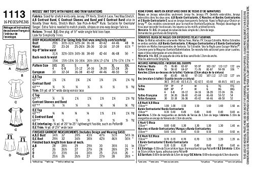 SIMPLICITY Patterns 1113 Misses' Easy-To-Sew Knit Tops, A (XXS-XS-S-M-L-XL-XXL)