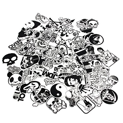 FNGEEN Random Stickers Black and White 100pcs Variety Vinyl Car Sticker Motorcycle Bicycle Luggage Decal Graffiti Patches Skateboard Stickers for Laptop Stickers