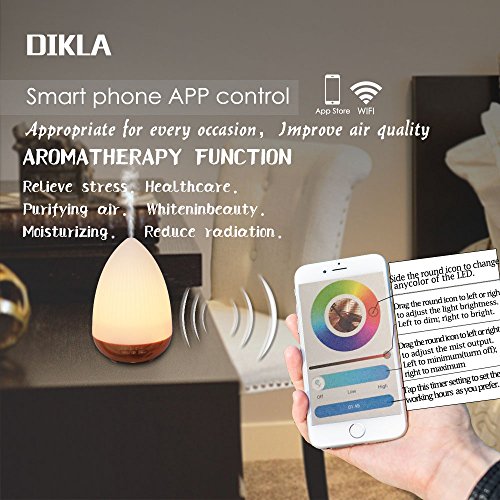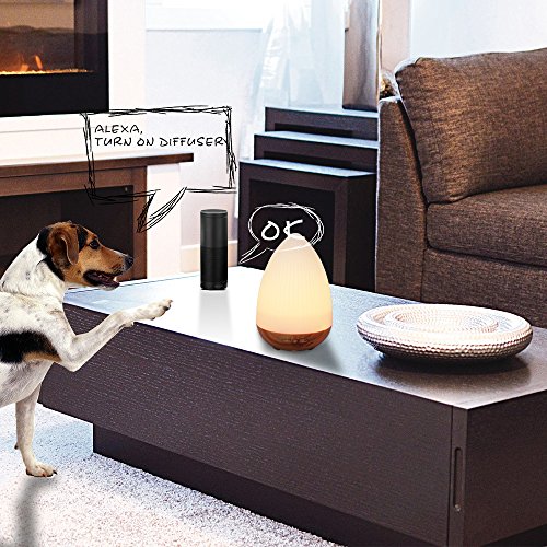 - DIKLA essential oil diffuser Compatible with Alexa, Work with Google Home and Umists APP; such as Amazon echo, echo dot, echo tap. You can control it with your voice wherever there is an Alexa devices and WIFI. You can also turn it on or off; set the working hours even change color the LED light via Umists APP, which is a new convenient function.