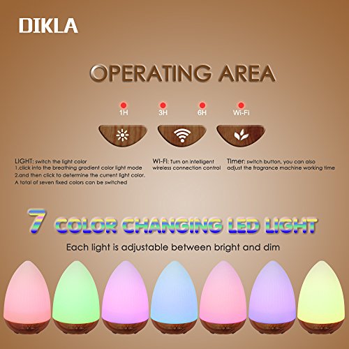 DIKLA Smart Wi-Fi Essential Oil Diffuser Compatible with Alexa, Work with Google and App Control 300ML Ultrasonic Cool Aroma Humidifier with 3 Timer Settings Wood Base (11B-2)