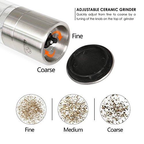 Benchusch 2 in 1 Salt & Pepper Grinder - Elegant & efficient design with premium stainless steel & high-precision ceramic grinding mechanism - Let's enjoy the freshness of your favorite spices.