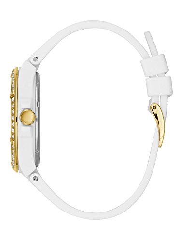 Round gold-tone stainless steel watch with white dial and crystal bezel