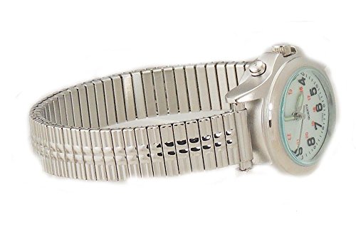 Ladies Indiglo Military Time Silver Tone Stretch Band Watch
