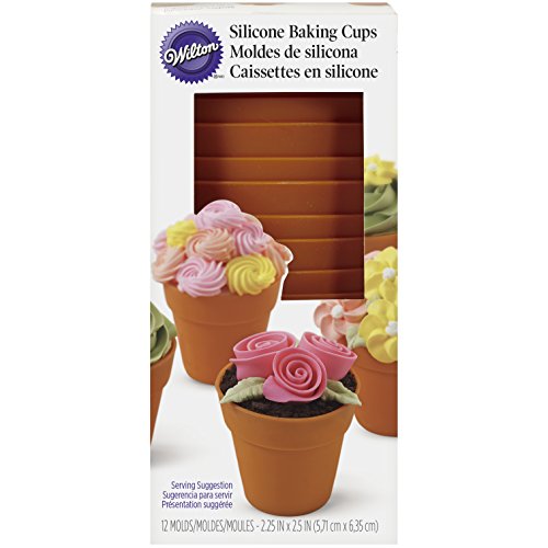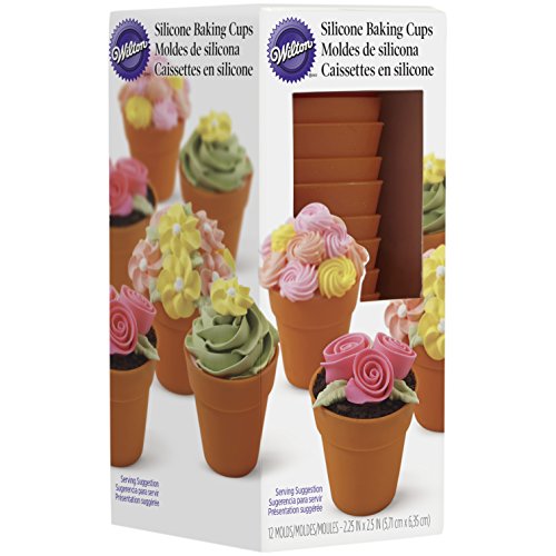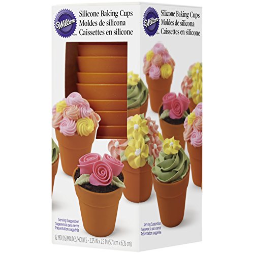 415-4120 Wilton Terra Cotta Pot Shaped Silicone Baking Cups, 12-Count