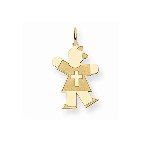 -. Title : 14K Yellow Gold Laser Cut Kid Girl in Cross Dress Charm Pendant