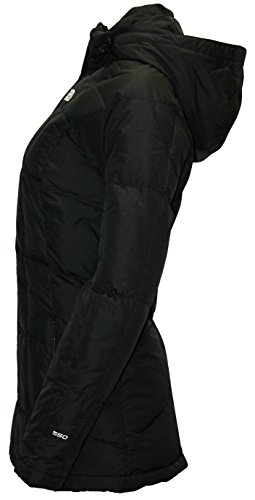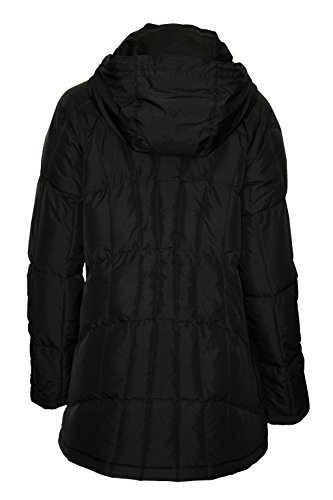 Shell: 100% Polyester. Lining: 100% Polyester. Pocket Lining: 100% Polyester. Insulation Good Down: 75% Minimum Down Cluster. Do not dry clean. Hand or machine wash separately on delicate cycle in warm water. Use mild detergent. Rinse well. Secure or close all zippers, hook and loop closures during wash. Tumble dry at low heat. Do not bleach. Do not iron. 550 fill goose down insulation Removable snap-in hood Front zip and snaps closure Two hand zip pockets