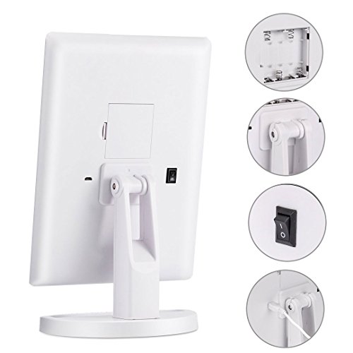 - ♥DOUBLE POWER SUPPLY -New Features Upgraded version of the LED makeup mirror, in addition to the battery can be powered, you can also use the USB power cord directly connected to the power supply phone charger, computer or power bank, battery power won’t be consumed if the mirror is in the USB charging mode.