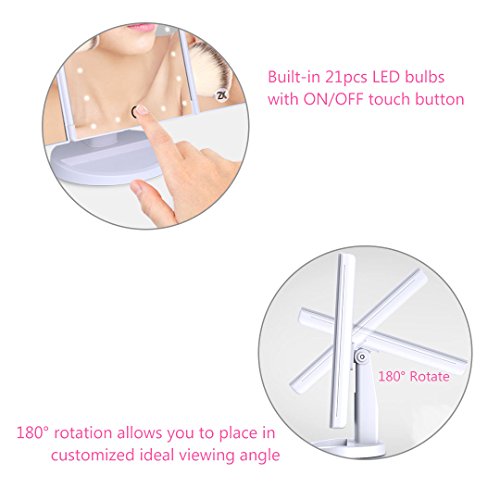 - ♥21 LED LIGHTS - This makeup mirror has 21 LED lights, LED lights on/off controlled by the touch sensor switch, brightness can be adjusted according to individual needs, easy with your daily needs of different scenes.
