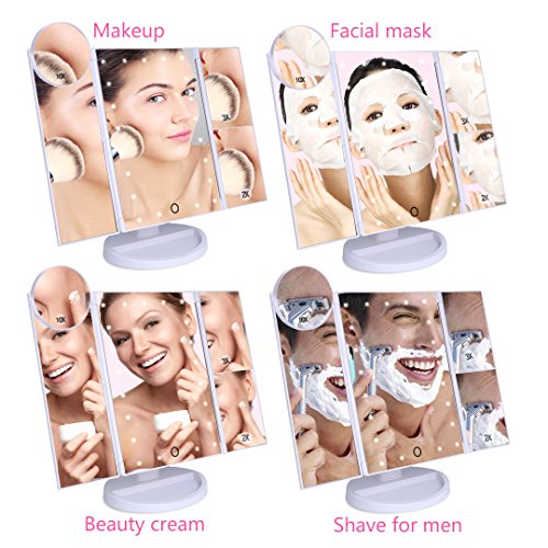 - ♥180 ° ROTATION & TRI-FOLD - Unique Tri-fold design, can effectively protect the mirror from damage, and detachable design makes you can take it anywhere you go. the mirror can be 180 °flip. Free to meet the different needs of different angles.