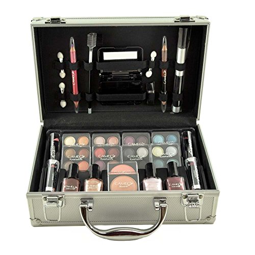-. Binding : Misc. -. Brand : Cameo -. EAN : 0719534943546 -. Feature : Portable and durable train case which comes in stylish Aluminum / What you get: Pro Eyeshadows, Face Powders, Blushes, Lipsticks, LipGloss, Brushes / Accessories, Eye & lip liner, Nail Varnishes, Applicators & FREE Aluminum Makeup case / Trendy & Stylish design makes this item a great gift idea for Makeup Beginners & Enthusiasts / CAMEO Makeup, Not Tested on Animals, Proud Member of PETA -. Model : 10402 -. MPN : 10402 -. PackageQuantity : 1 -. PartNumber : 10402 -. ProductGroup : Beauty -. ProductTypeName : BEAUTY -. Title : Cameo Carry All Trunk Train Case with Makeup and Reusable Black & White Aluminum Case -. UPC : 719534943546