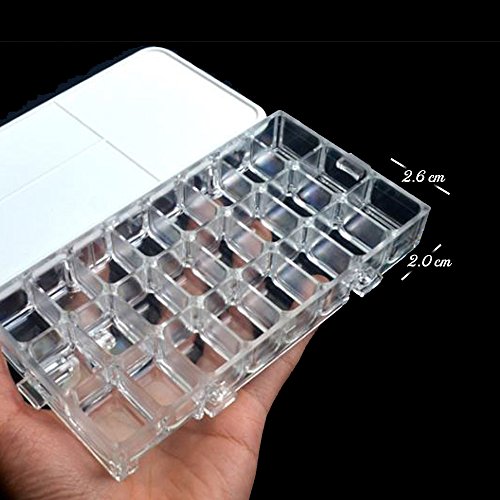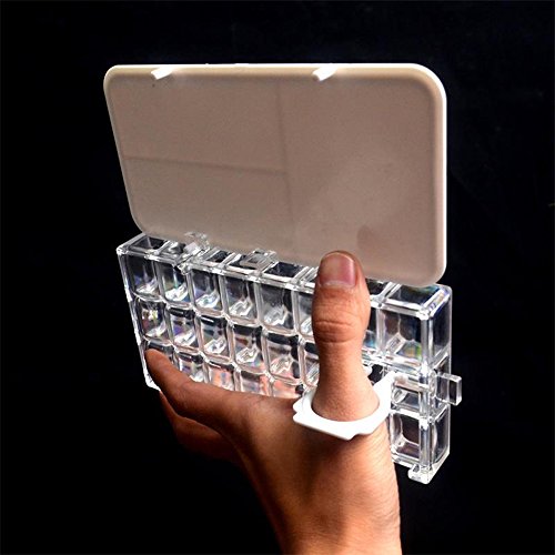 - Mixing space: 24 wells, each capacity is 10ml, size of palette box is 17 x 9 x 2.5cm (6.7" x 3.5" x 1"), cover has ring that holds palette in plam for travel