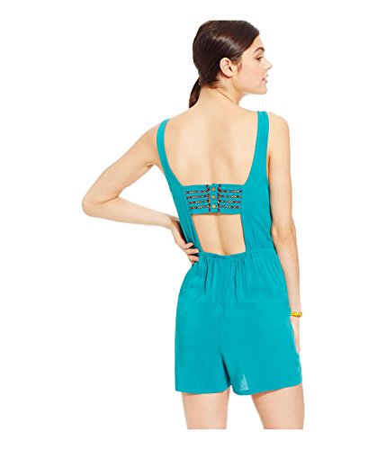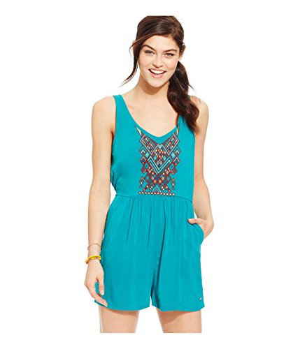Product DescriptionRomper woven material embroidery on the front slit pockets low back button closure0