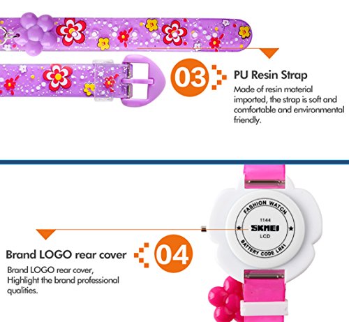 Attractive Cartoon Appearance Design:Cute flower dial with little hanging ornament,suitable for 2-12 years old girls.Great for gifts