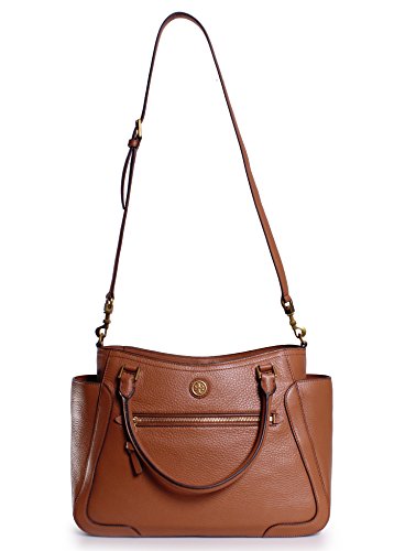 -. Brand : -. Color : Bark -. Department : womens -. EAN : 0888736502230 -. Feature : pebbled leather tote with golden hardware. / Rolled top handles with square rings; 7" drop. / Removable shoulder strap; 20.5" drop. / Exterior side open pockets; front zip pocket. / Snap top secures roomy interior. -. Model : 11159791 -. ProductGroup : Shoes -. ProductTypeName : HANDBAG -. Size : 10.7 in x 14.3 in x 5.5 in -. Title : Frances Leather Satchel in Bark -. UPC : 888736502230