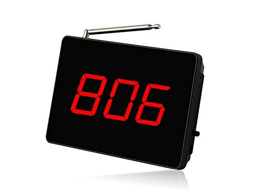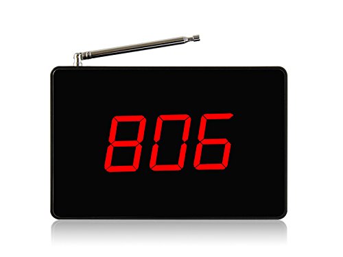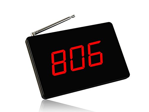 - Feature : Need more pagers or watch receiver? Please search B00EC57M6Y or B00EC6P0K8 on Amazon / SC-R15: 01. Registred number can not be register again, avoid repeated registration to the same number. 02. Display one group of three-digit at the same time and store 10 numbers scrolling display / 03. Prompt modes: Dingdong, Alarming sound, voice report 04. Call button capability: 999 / 05. English letter beginning display: A,B,C,D,E,F,H,P,L,J 06. Small display, big screen / APE560: 01. Equipped with waterproof base 02. Stable login mode03. Anti-temperature and humidity changes 04. The number can be changed optionally with strong re-use ability