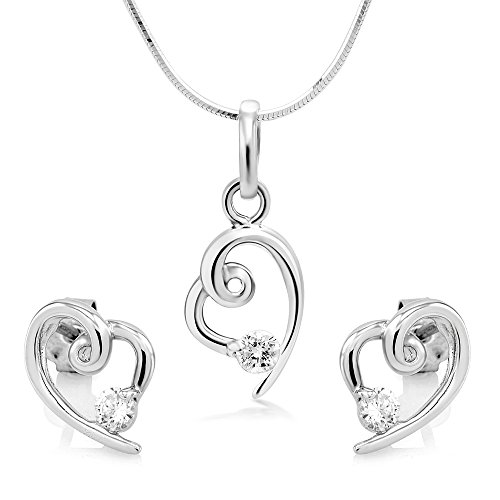 -. Title : Sterling Silver CZ Cubic Zirconia Diamond Stone Heart Love Jewelry Set - Earrings and Necklace 18"