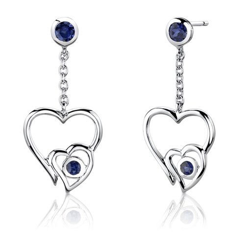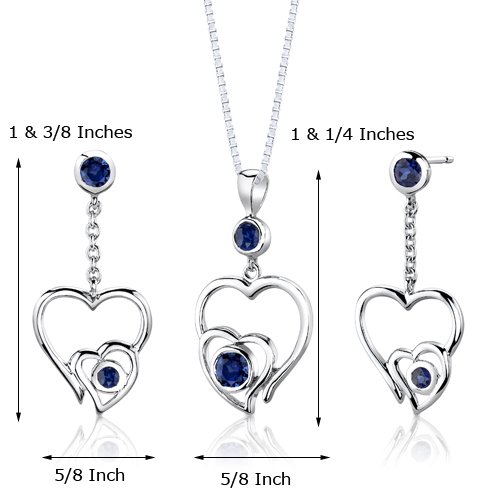 -. Title : Created Sapphire Pendant Earrings Necklace Sterling Silver Rhodium Nickel Finish Heart Design
